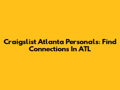 Craigslist Atlanta personals played a significant role in the city's online community, providing a space for individuals to connect and form relationships. While the platform's personals section is no longer available, its legacy lives on in the numerous alternative platforms and dating apps that offer similar services. As you explore online connections in Atlanta, remember to prioritize safety, respect, and responsible online behavior.