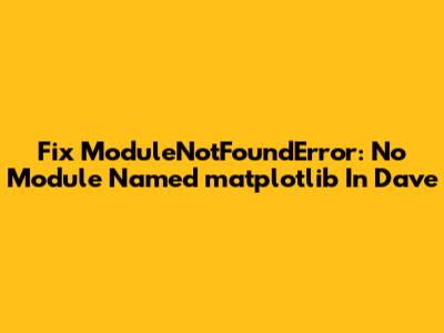 Fix ModuleNotFoundError: No Module Named 'matplotlib' In Dave