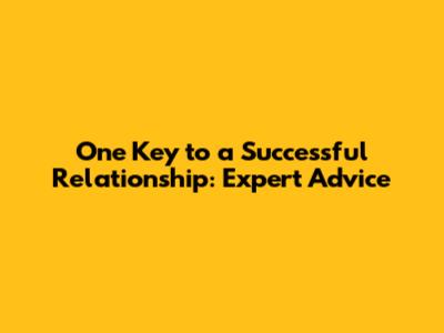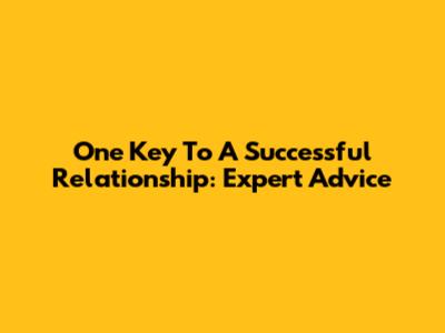 One Key To A Successful Relationship: Expert Advice
