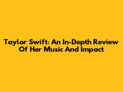 Taylor Swift: An In-Depth Review Of Her Music And Impact