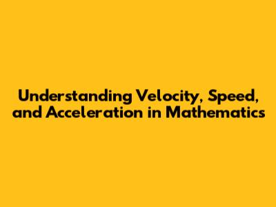 Understanding Velocity, Speed, And Acceleration In Mathematics